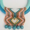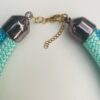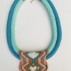 Statement κολιέ φτιαγμένο με ορειβατικά κορδόνια, τρέσα, τιρκουάζ χάντρες και μια μεταλλική χρυσή καρδιά. Με ρυθμιζόμενο κούμπωμα.